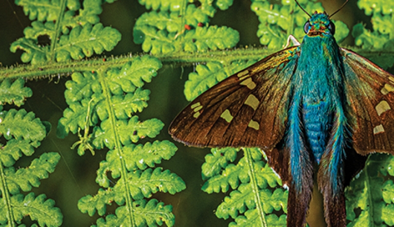 Our group was out birding in the Mindo area, when we spotted this Long-tailed Skipper (Urbanus proteus) flitting about the vegetation alongside the trail.