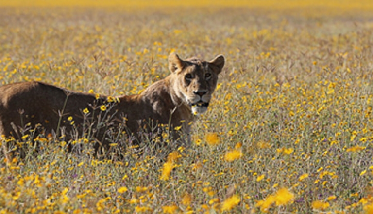 This lioness appeared among the yellow wildflowers, which I later learned were bidens and aspilia, at the bottom of the Ngorongoro Crater.
