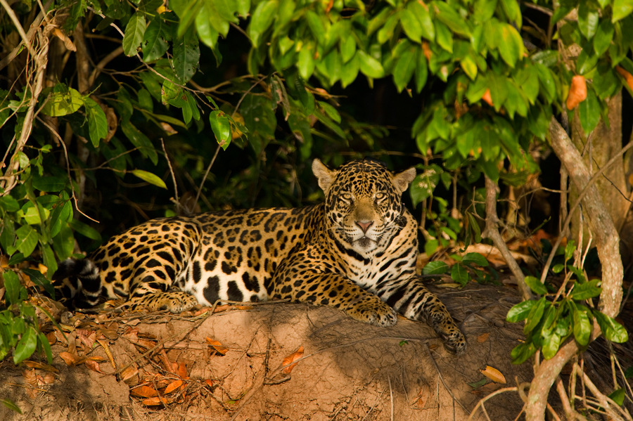 A small boat glides down a sun-dappled river through purple water hyacinths, paralleling golden sand beaches where skimmers nest, and past a family of giant otters, in search of the elusive jaguar here in Brazil’s Pantanal at the ends of the Earth. Shady lagoons, water hyacinth-choked estuaries, and smooth sand beaches are the setting for this photographic adventure. Join Gustafson Photo Safari as you capture the Pantanal’s amazing fabric of life unfolding from one moment to the next: kingfishers and hawks fishing, huge Jabiru Storks patrolling the beaches, Toco Toucans roosting in trees along the river, and large family groups of giant otters hunting for fish. Come face to face with some of the most beautiful and dramatic photo subjects on Earth including, of course, the main event… jaguars. Jaguars often relax in the shade of riverside trees and underbrush to get out of the heat of the day. From these vantage points they monitor the river and wait for prey to come for a drink. The Pantanal embodies everything that’s wild in nature! Its chapter in “To the Ends of the Earth” includes photos of jaguars in their habitat, giant otters eating river catfish, and a blizzard of colorful birds found nowhere else in the world. By the end of the trip, each photographer will have had several opportunities to make photographic images of a lifetime!
