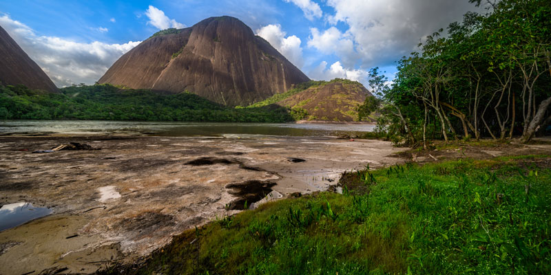 Today travel about an hour and a half to the Cerros de Mavecure. These three monolithic hills are located about 30 miles upstream from the city, following the Inírida River. The three hills that make up Mavecure are called Pajarito Hill (2,335 feet), Mono Hill (1,574 feet) and Mavecure Hill (560 feet) and are part of a much larger geological formation known as the Guiana Shield, which encompasses Guyana, Suriname, French Guiana, Venezuela and parts of Colombia and northern Brazil. The Cerros de Mavecure are one of the most sacred places for several different Amazonian Indigenous tribes, such as the Curripaco and the Puinave peoples. The Remanso community next to the hills offers grandiose opportunities for birding in forest with firm, fragmented land that connects evenly with monolithic stone blankets filled with scattered tall trees. This is an excellent place to view King Vulture, Black Skimmer, Swallow-winged Puffbird, Cliff Flycatcher, Orange-breasted Falcon, Black Caracara, Crested Oropendola, Yellow-rumped Cacique, Burnished-buff Tanager, Black-collared Swallow, Brown Jacamar, Bright-rumped Attila, Golden-headed Manakin, Opal-rumped Tanager, Grayish Saltator, Harpy Eagle, White-naped Seedeater, Spangled and Pompadour Cotingas, White-browed Purpletuft, and Spot-backed Antwren. Spend the morning birding on the Remanso community land surrounding the hills, and then board the boat for a five-minute ride to the community's restaurant. Here you will have an authentic Indigenous lunch, followed by time to relax on the beach. Depart mid-afternoon for the journey back to Inírida. This evening, have dinner and experience a special show by a local Indigenous community as we say farewell to the Colombian Amazon. Elevation: 650-2,300 feet / Accessibility: Boat ride, hiking over stone trails is optional / Temperature: 80-95 °F.